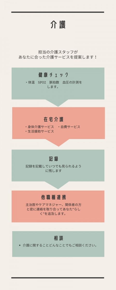 私たちが『あなた専属の看護師、リハビリスタッフ、介護士』になります。